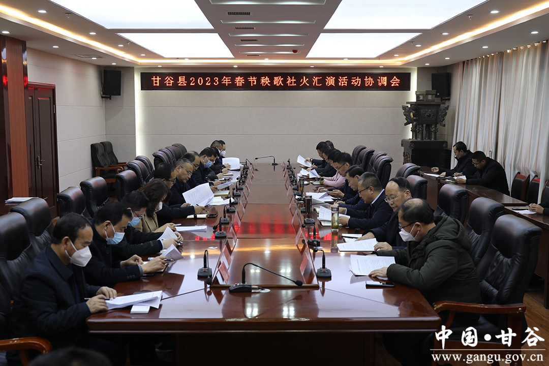 会议宣读了《甘谷县2023年春节秧歌社火汇演活动实施方案》;杜兴、范慧、刘强就分管工作进行了具体安排;各乡镇和相关部门汇报了筹备工作进展情况。
