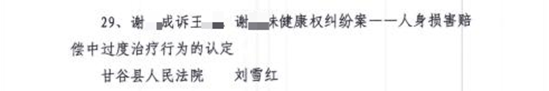 甘谷县人民法院民事审判庭法官助理刘雪红撰写的案例分析《谢某成诉王某、谢某妹健康权纠纷案——人身损害赔偿中过度治疗行文的认定》获全省法院系统2022年度优秀案例分析三等奖。