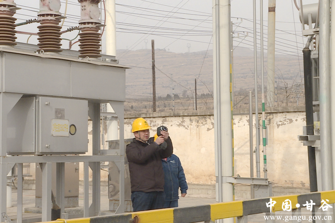 在35千伏渭阳变电站内,甘谷县供电公司工作人员正在开展春节期间变电站特巡工作,检查主变是否运行正常,有无发热现象等。在城区供电所营业厅,值班员张彩云正帮用户在自助缴费终端充值电费,向用户介绍线上办理业务流程和缴费方法。
