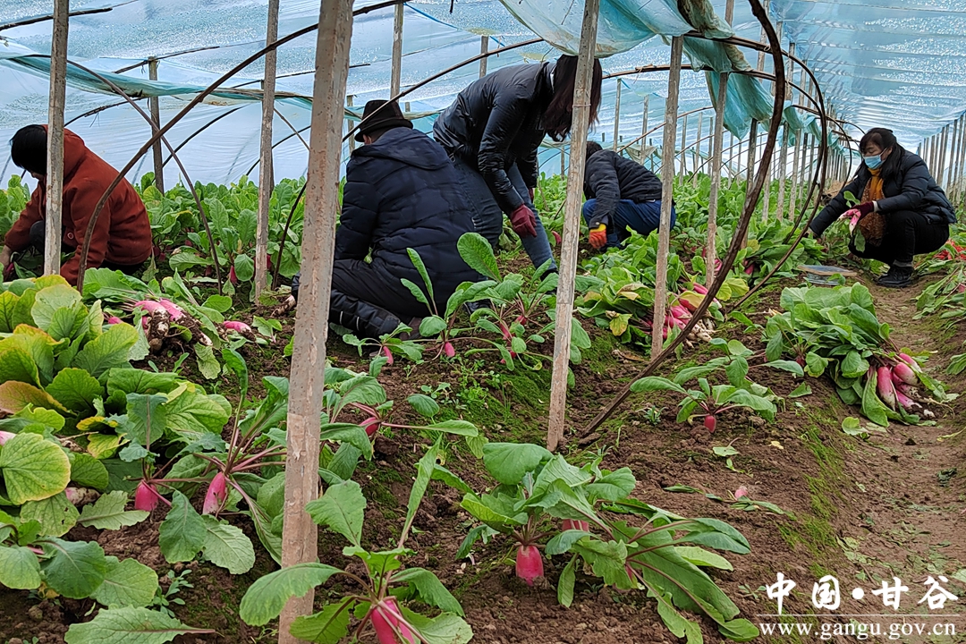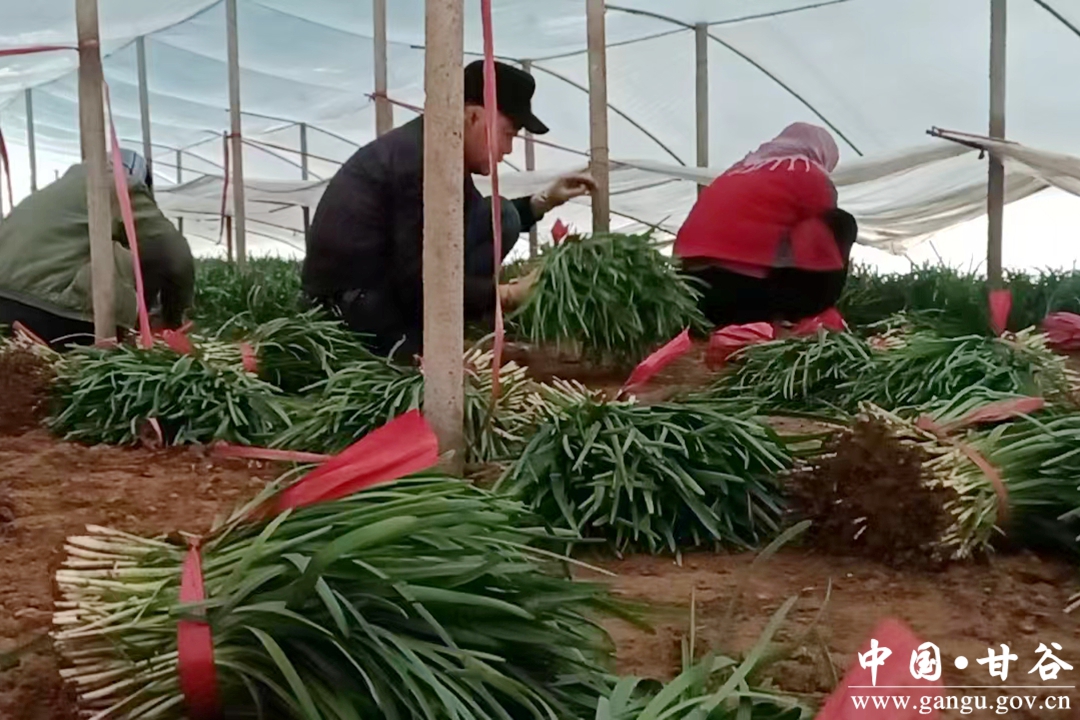 寒冬时节,在甘谷县磐安镇韭菜种植基地,四十里铺农户张根顺正在忙碌着新年前的第一次揭棚。掀起层层塑料薄膜,一片片绿油油的冬韭尽收眼底。张根顺脸上透出的笑意,显示着今年又是个丰收年的开始。