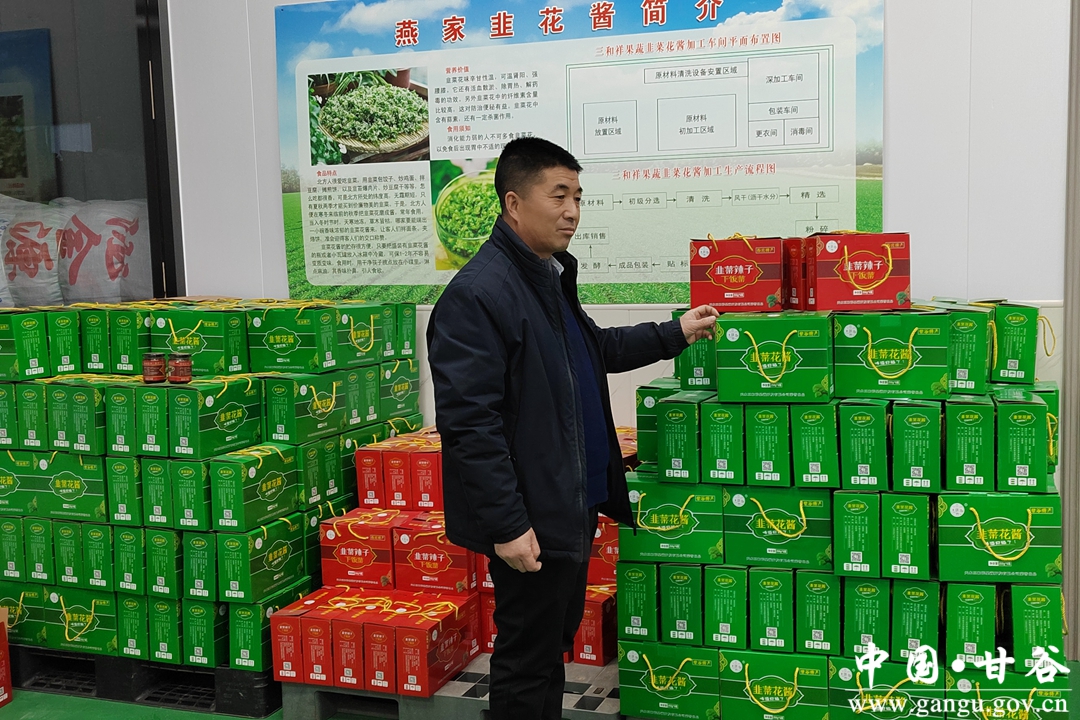 在磐安镇天水三和祥果蔬开发有限公司,公司经理燕全有说:“我们着力在农产品开发和包装上下功夫,新建成冰瓶生产线一条、农产品包装线一条,韭花酱、韭菜辣椒下饭菜生产线两条。配套建设厂房1100平方米、农产品展示中心100平方米。目前公司开始收购春萝卜,收购价格1.8元每斤。公司积极吸纳职工1100人就业,人均工资年收入可达31000元以上。”