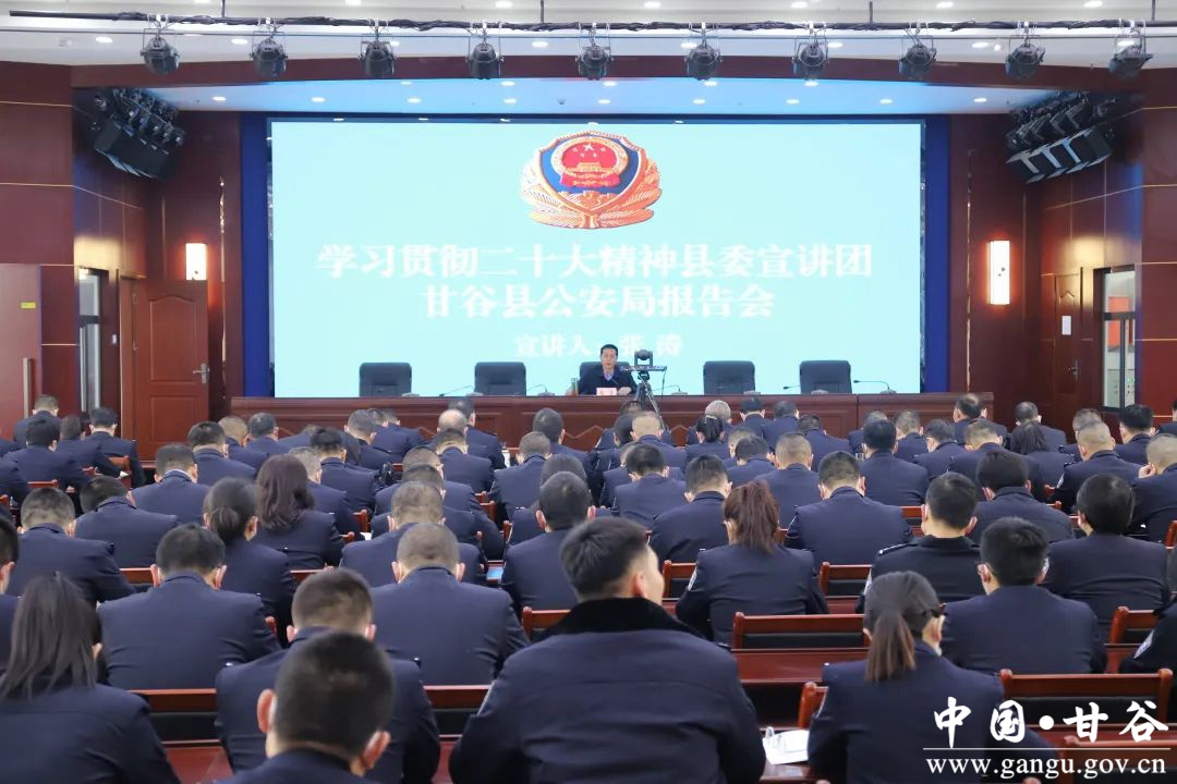 近日,副县长、县公安局党委书记、局长张涛为全局民辅警宣讲党的二十大精神。县公安局党委班子成员、局属各部门民警辅警共计600余人聆听了宣讲报告,宣讲会以视频会议形式开至各基层所队。