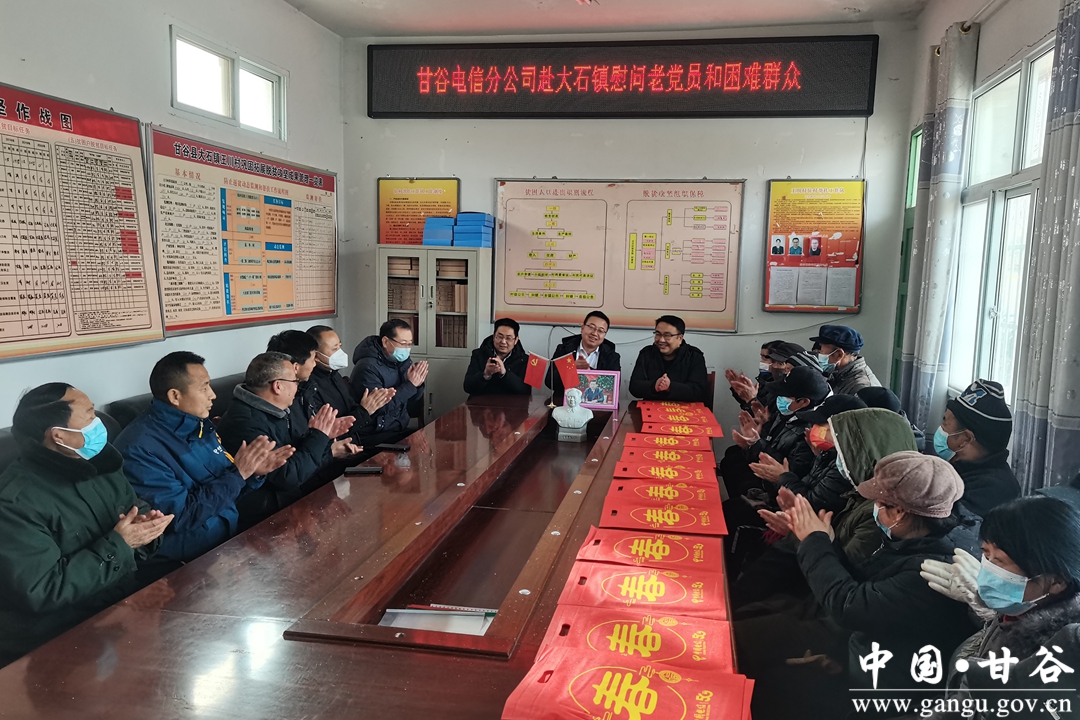 新春佳节来临之际,甘谷电信公司心系老党员和生活困难群体,开展了走访慰问活动,为老党员和生活困难群众送上新春的祝福。