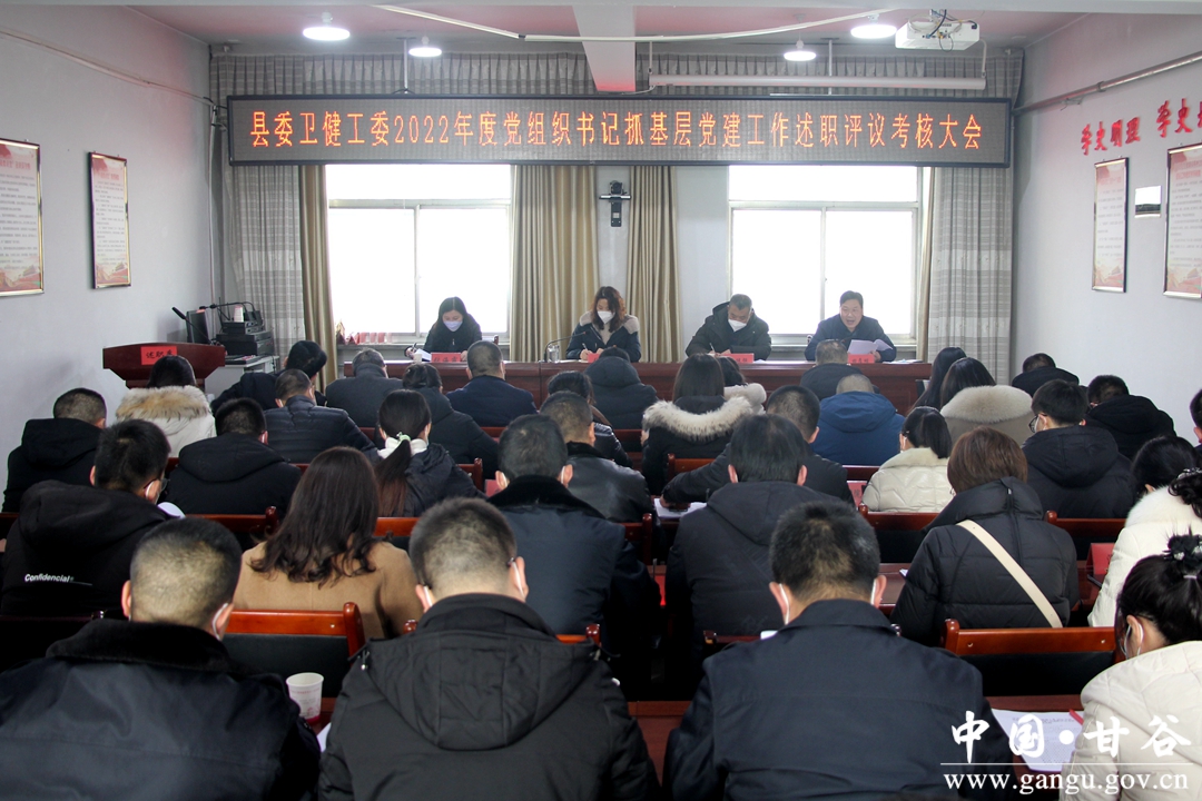 为深入学习宣传贯彻党的二十大精神,认真履行管党治党主体责任、严肃党内政治生活,促进党支部书记认真履行好党建“第一责任人”责任,1月17日,甘谷县委卫生健康工委召开2022年度党组织书记抓基层党建工作述职评议考核大会。县纪委监委驻县卫健局纪检监察组、县委组织部有关负责同志与会指导。局党组班子成员、县医院党委书记、县中医院党总支书记,县直各卫生健康单位、各乡镇卫生院党支部书记、党务干部和部分“两代表一委员”共计60余人参加会议。