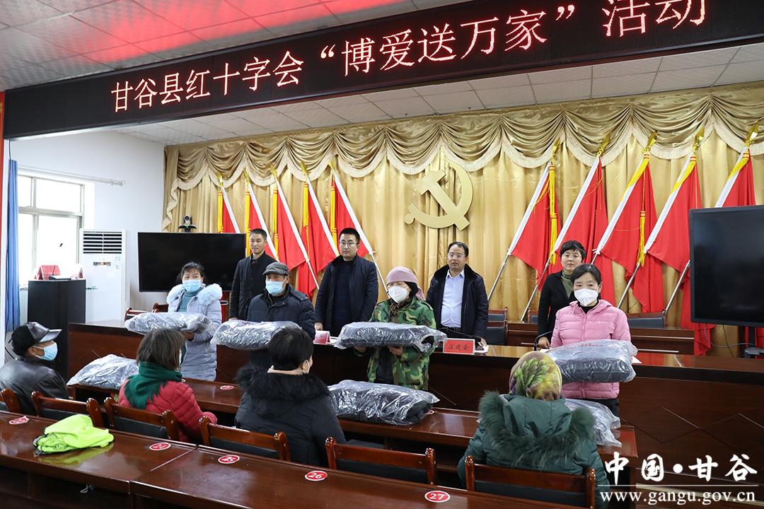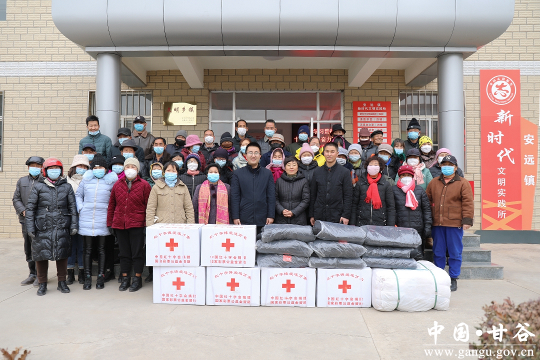 1月13日,甘谷县红十字会“博爱送万家”活动在安远镇启动,为困难群众现场发放价值3万余元的棉衣棉被等物资。市红十字会专职副会长陈向荣出席活动。