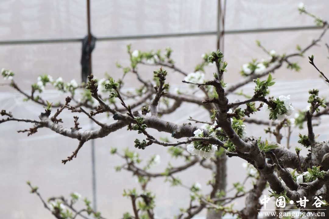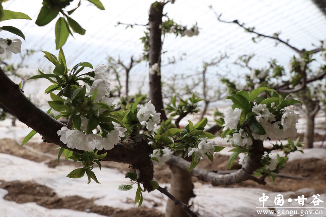 凛冽冬日,尽管街道上百花凋零、草木萧条,但在甘谷县安远镇巩川村的现代农业反季节樱桃园内,樱桃花如期盛放,一片片,一朵朵,一枝枝,或白或粉的花骨朵在风中微微摇曳,散发出阵阵清香,给沉寂的冬日增添上一抹蓬勃肆意的生命力。