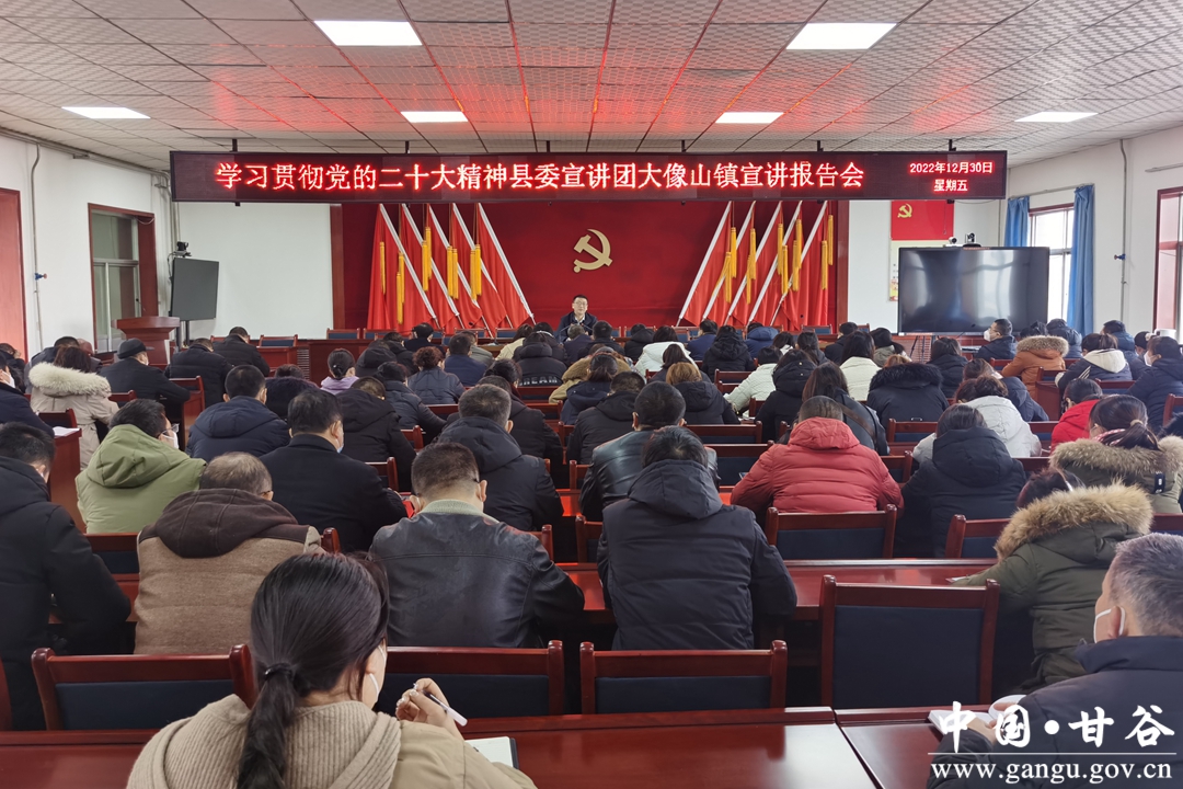12月30日上午,大像山镇召开学习贯彻党的二十大精神宣讲报告会。县委常委、大像山镇党委书记杨扬作宣讲报告。大像山镇全体科级领导、镇村两级干部共计200余人参加宣讲报告会。