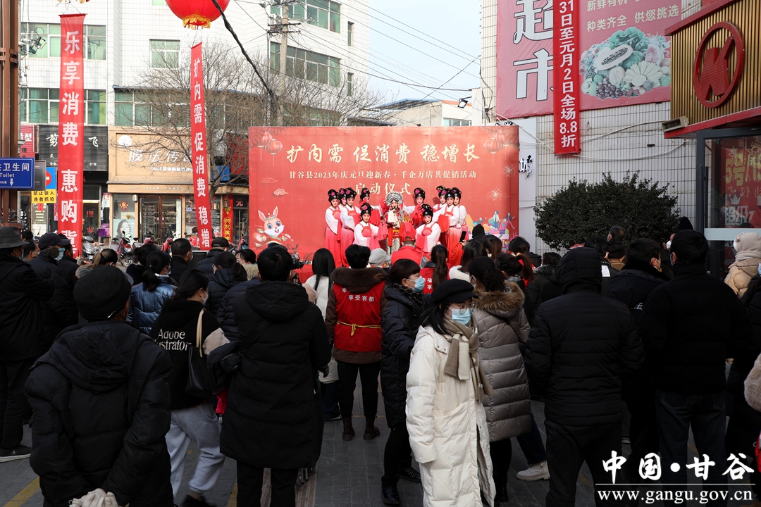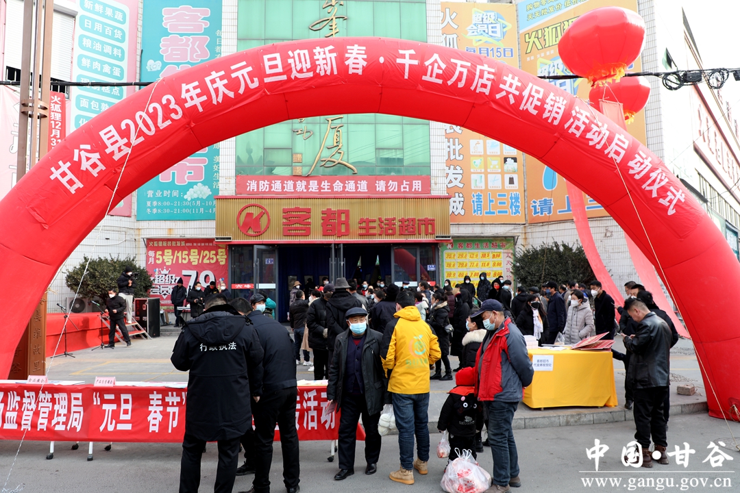 12月31日,甘谷县2023年“庆元旦迎新春·千企万店共促销”活动启动仪式在六峰商厦大门前举行。记者了解到,本次活动主要是在零售、电商、餐饮、住宿、汽车、家电、房地产等领域开展政策支持促消费、优惠让利促消费、创新模式促消费、银企合作促消费等系列活动刺激消费,进一步繁荣全县消费市场,激发市民消费激情,全面释放被抑制、被冻结的消费需求,为加快推进商业秩序全面复苏注入新动能。