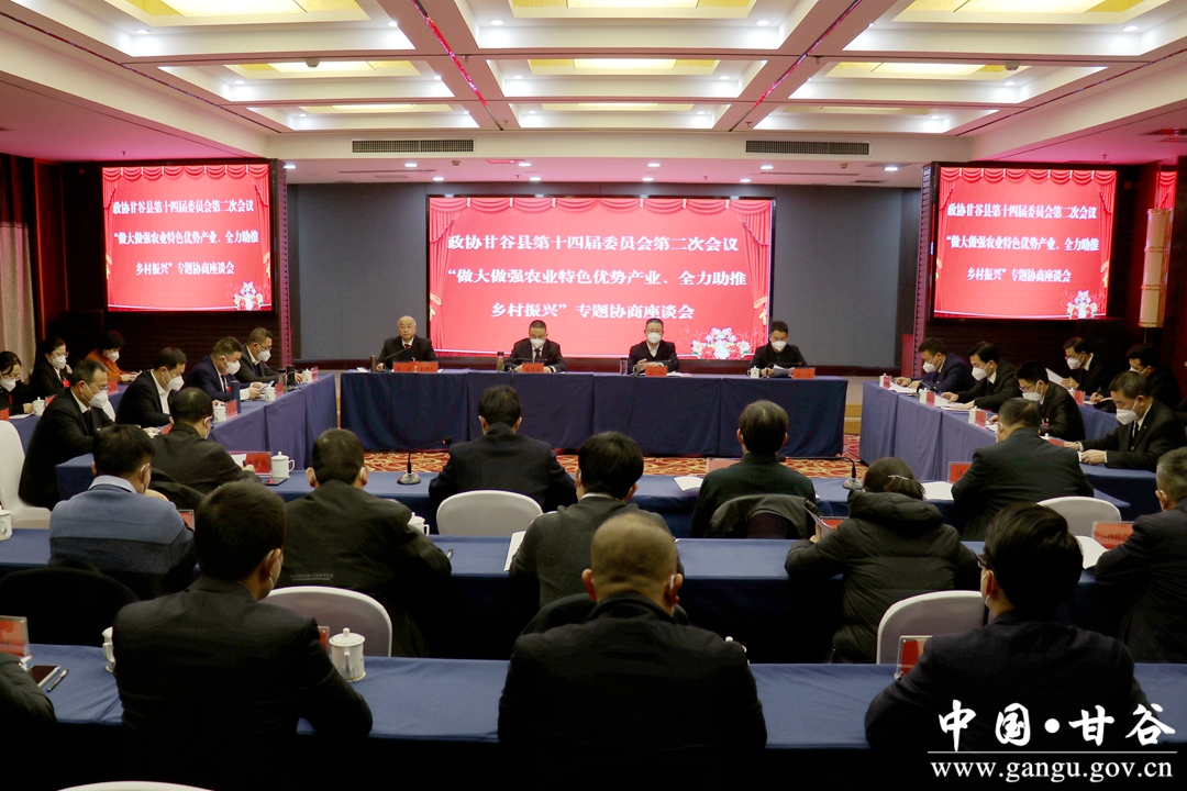 12月26日,政协甘谷县第十四届委员会第二次会议举行“做大做强农业特色优势产业、全力助推乡村振兴”专题协商座谈会,县委常委、统战部部长、县政协党组副书记王见学,副县长金辉,县政协副主席魏杰出席座谈会;县政协副主席蒋文主持座谈会。县直相关职能部门负责人及农业界委员共计50余人参加座谈会。