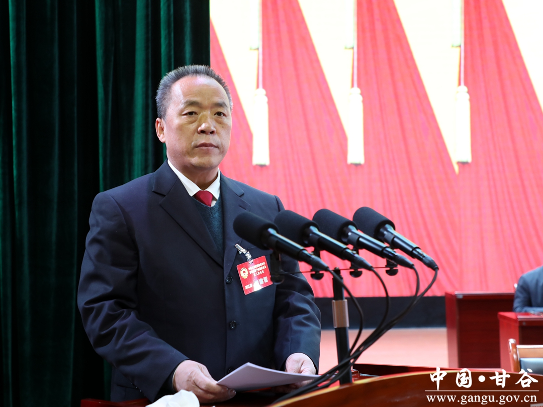 (县政协党组书记、主席曹明忠代表政协甘谷县第十四届委员会常务委员会作工作报告)