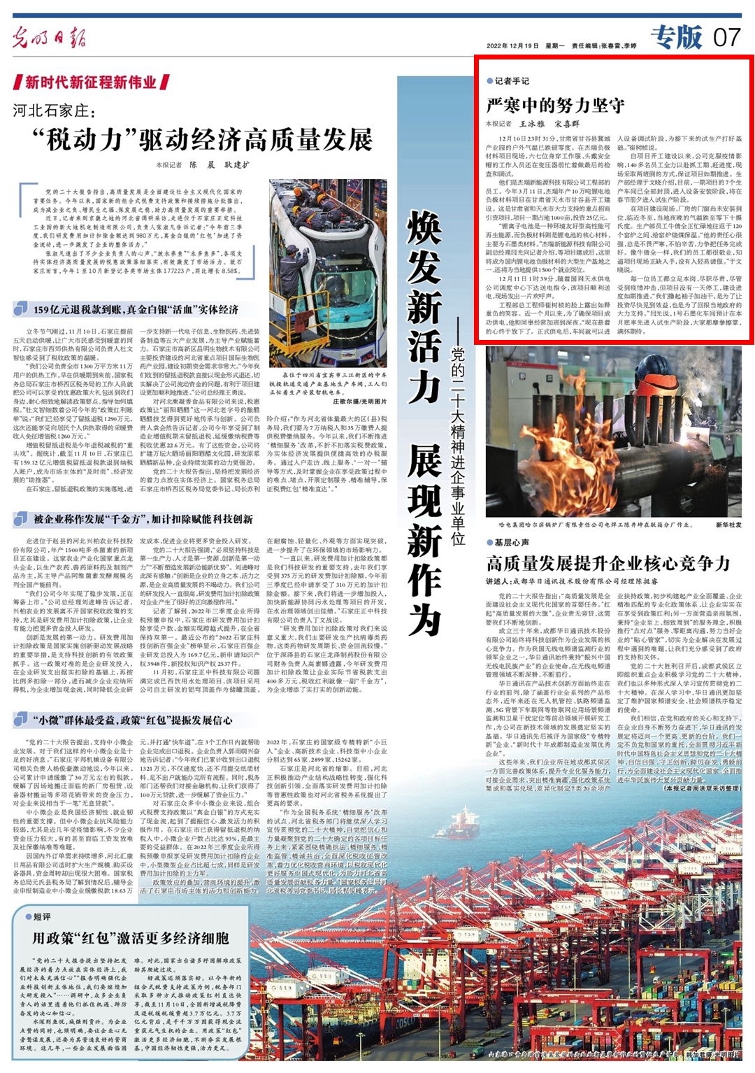 自项目开工建设以来,公司克服疫情影响,140多名员工全力以赴抓工期、赶进度,现场采取两班倒的方式,保证项目如期推进。生产部经理于文晓介绍,目前,一期项目的7个生产车间已全部封顶,进入设备安装阶段,将在春节前夕进入试生产阶段。
