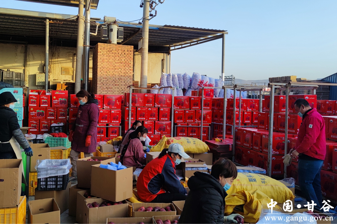 走进新兴镇某苹果冷链冷藏基地,记者看到工人戴着口罩,在各自岗位上熟练地给苹果进行分级、装箱、贴标,叉车举着大筐大筐的苹果来回穿梭协助装车,眼前呈现出一幅争分夺秒、配合默契的喜人场景,来自北京新发地水果采购商孟凡林经理正在一旁焦急地等待发车。