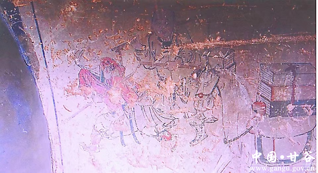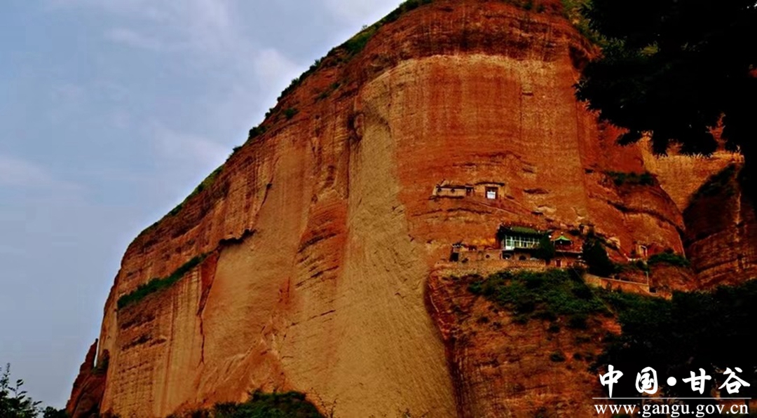 华盖寺石窟,位于甘谷县城西二十铺村,距大像山石窟7公里。石窟所处山形奇特,直壁兀起,如一红缦绿盖的华盖亭亭玉立,山崖上以“之”字形排列的洞窟参差错落,状如峰房,故又称华盖寺洞。华盖寺现存洞窟27个,有佛、道、儒三家及祖先崇拜四个内容。23号窟洞壁两侧保存的《唐僧取经图》和《唐僧取经归来图》两幅元代壁画是华盖寺壁画艺术中的珍品。华盖寺不论是佛、菩萨还是罗汉,体态都清俊秀美,传情动人。这些精致优美的艺术泥塑,是“以形写神”和神形兼备的古代泥塑代表作,能感受出不同历史时期的各个阶层的人们不同的艺术欣赏情趣和审美标准。