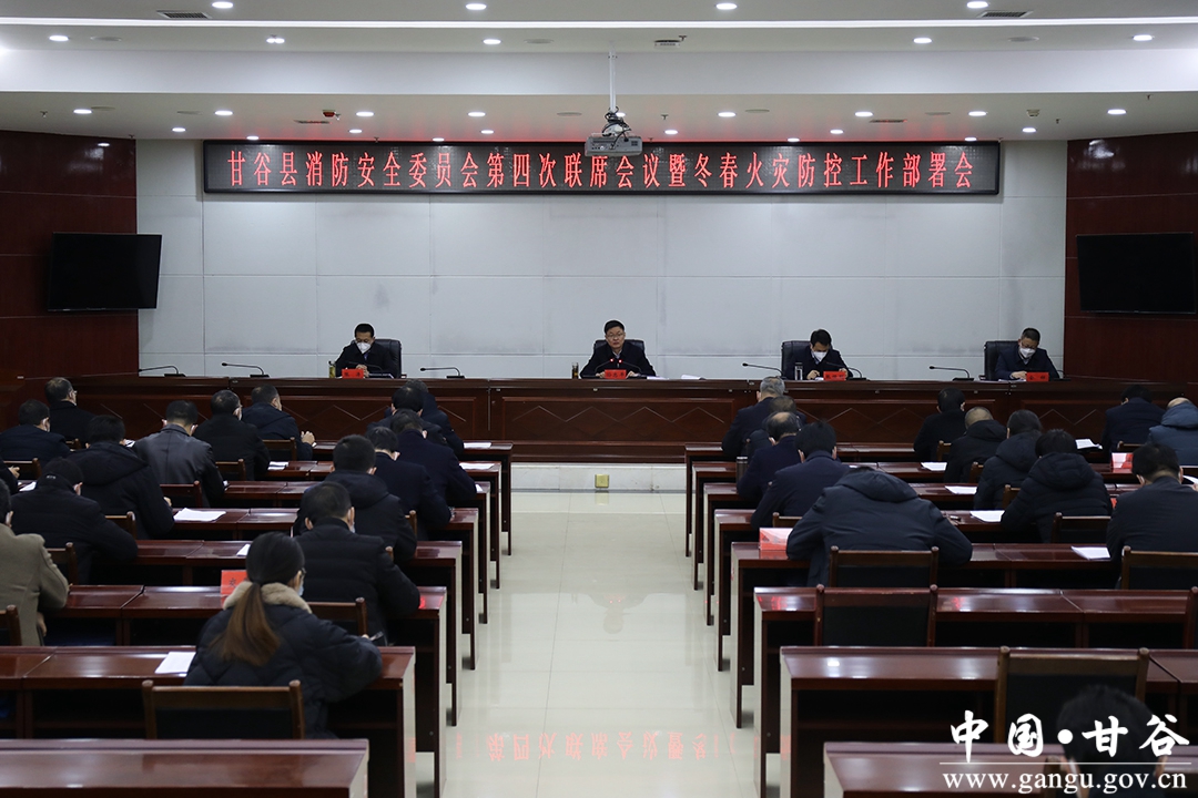 12月8日,甘谷县召开消防安全委员会第四次联席会议暨冬春火灾防控工作部署会。县委副书记、县长孙忠平出席会议并讲话;县委常委、副县长张恒刚主持会议;副县长张涛、金辉出席会议;县消安委会成员单位主要负责人共计50余人参加会议。