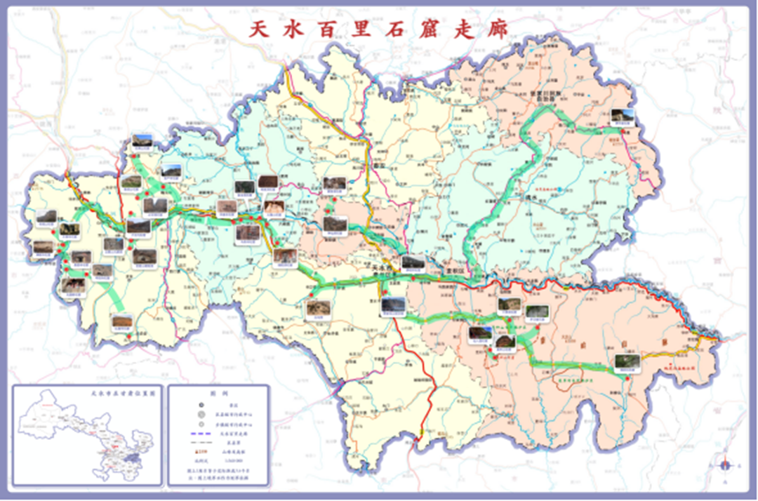 天水是丝绸之路西出长安的第一历史重镇,在中西方文化交流史上发挥着重要的作用。魏晋以来,随着佛教东传,天水境内渭河沿线自西向东逐渐形成了木梯寺、水帘洞、拉梢寺、华盖寺、大像山、麦积山、仙人崖等32处石窟寺,其中全国重点文物保护单位5处,省级文物保护单位1处,县级文物保护单位11处。这些石窟寺规模较大,分布集中,风格代有传承且一脉相续,艺术之精湛,保存之完好,在全国均属罕见。
