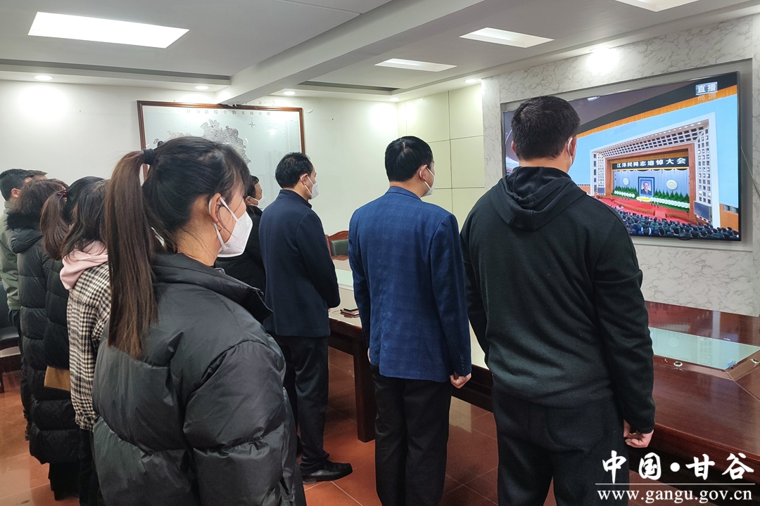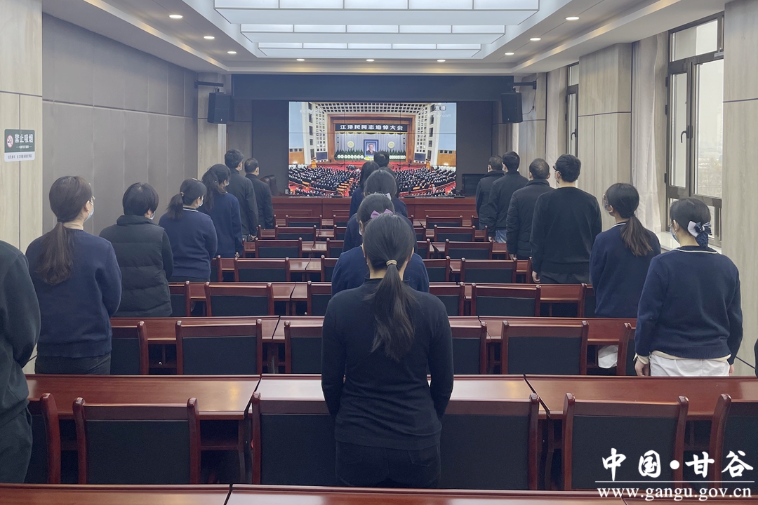 12月6日上午,党中央、全国人大常委会、国务院、全国政协、中央军委在北京人民大会堂隆重举行江泽民同志追悼大会。甘谷县组织广大干部群众通过电视、广播、网络、新媒体等形式收听收看追悼大会实况,怀着无比沉痛的心情,深切缅怀江泽民同志的卓越功勋,深刻感悟江泽民同志的精神风范。