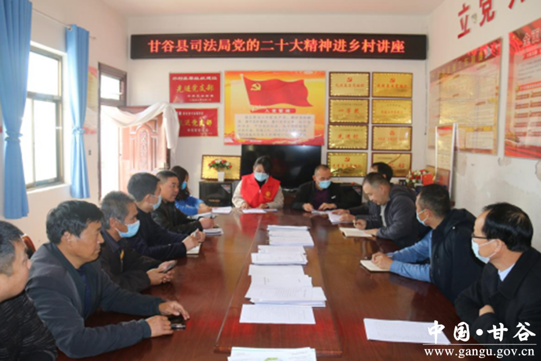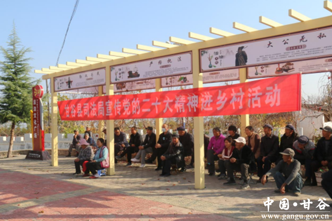 为深入学习贯彻党的二十大精神,近日,甘谷县司法局组织新时代文明实践志愿者深入新兴镇孙家坪村开展党的二十大精神进乡村宣传活动。他们进村入户,用接地气、贴生活、聚民心等多元的宣传方式和通俗易懂的语言为群众讲解党的二十大报告,让党的“好声音”传进寻常百姓家。