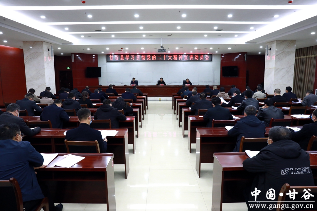 11月18日,甘谷县召开学习贯彻党的二十大精神宣讲动员会议。会议强调,要充分认识做好党的二十大精神集中宣讲的重要意义,精心组织、高标准高质量开展集中宣讲活动,让党的二十大精神家喻户晓、深入人心、落地生根,凝聚起推动甘谷经济社会高质量发展的强大合力。县委常委、宣传部长范慧出席会议并讲话。各乡镇、各有关部门负责人参加会议。