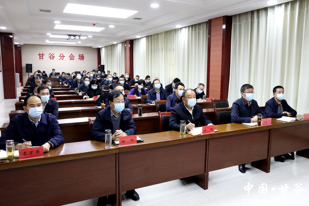 县委书记吴健,县委副书记、县长孙忠平,县人大常委会主任杨帆,县政协主席曹明忠等县四大组织领导在甘谷分会场参加会议。