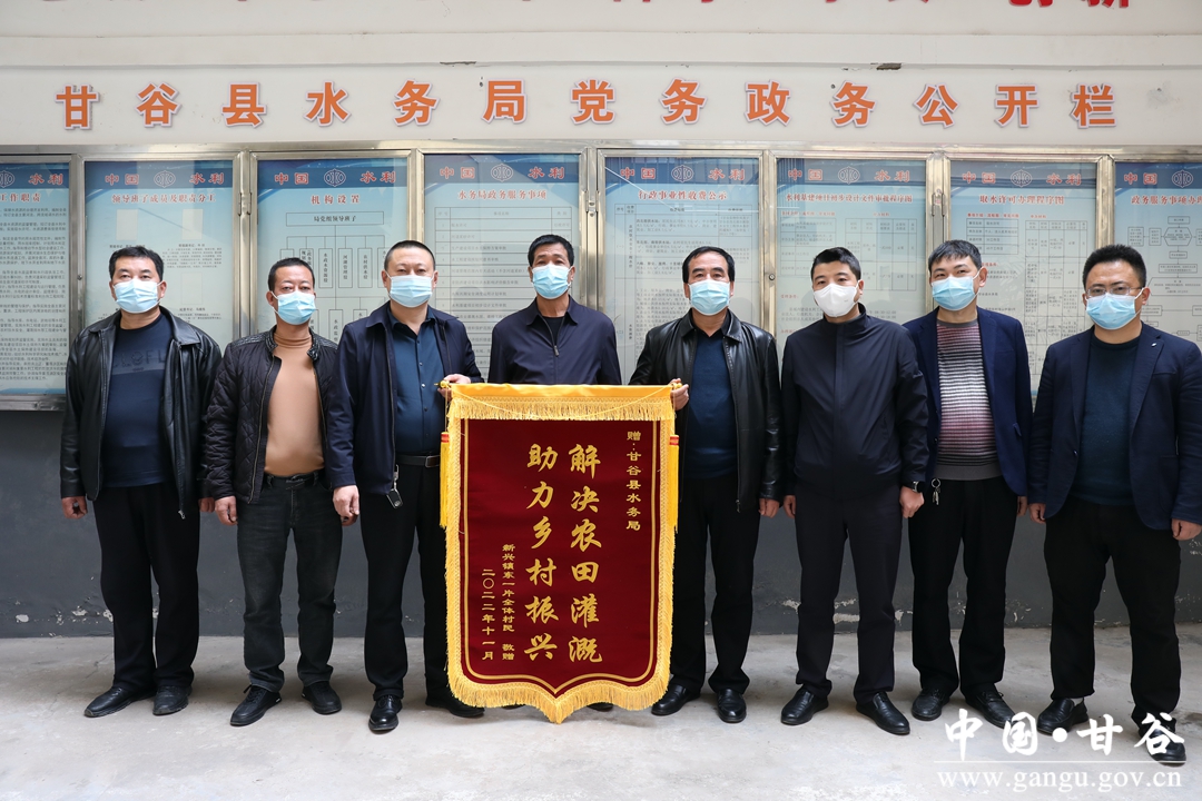 11月8日,新兴镇蔡家寺村村民代表来到县水务局,送上了“解决农田灌溉 助力乡村振兴”锦旗,以表达对县水务局解决了灌区群众农田灌溉难题的感激之情。