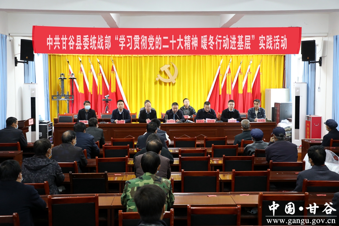 11月3日,县委统战部联合新的社会阶层人士联谊会、移动公司甘谷分公司深入西坪镇开展“学习贯彻党的二十大精神、暖冬行动进基层”实践活动。县委常委、统战部部长王见学强调,要深入学习贯彻党的二十大精神和习近平总书记关于做好新时代党的统一战线工作的重要思想,发扬延安精神和红旗渠精神,坚持农业农村优先发展,巩固拓展脱贫攻坚成果,全面推进乡村振兴,为实现农业农村现代化而不懈奋斗。