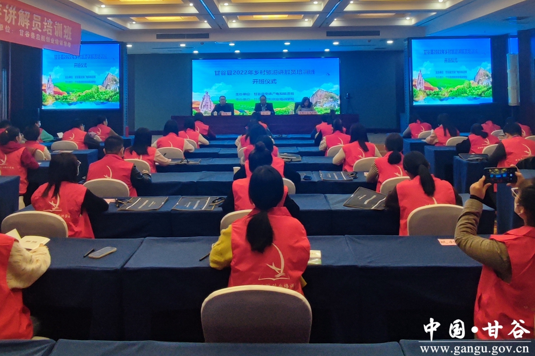 近日,甘谷县2022年乡村旅游讲解员培训班在甘谷县金成大酒店开班。县文旅局、甘谷县启航培训学校主要负责人、各乡镇乡村旅游讲解员、各类博物馆、纪念馆、民俗馆、景区景点、乡村旅游示范点讲解员代表共计60余人参加了开班仪式。