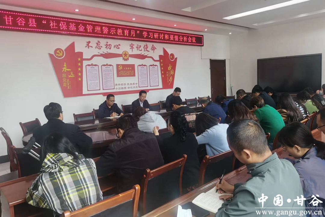 为进一步提升社保基金风险防控意识,推动社会保险基金管理提升年专项行动向纵深发展,切实维护社保基金安全。自9月份以来,甘谷县人社局开展了“以案促改,防控风险”为主题的社会保险基金安全“警示教育”系统活动。