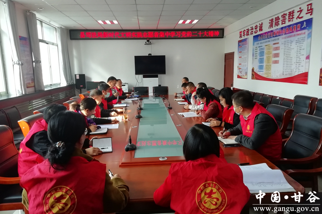 奋斗答卷鼓舞人心,壮阔征程催人奋进。10月31日,甘谷县司法局充分发挥新时代文明实践中心基地作用,组织新时代文明实践志愿服务者集体学习党的二十大精神。