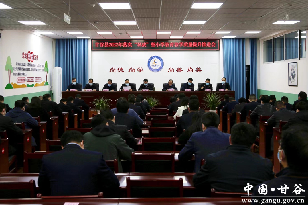 为了深入学习宣传贯彻党的二十大精神,理解好、落实好习近平总书记在党的二十大报告中提出的“坚持以人民为中心发展教育,加快建设高质量教育体系,发展素质教育,促进教育公平”要求,聚焦全县教育事业高质量发展大局,协调抓好促进公平、提高质量两件大事,持续落实国家、省市县“双减”政策,不断提升小学教育教学质量,促进县域教育均衡发展,为建设教育强县,打造教育品牌奠定坚实的基础。 11月3日,甘谷县教育局在西城区九年制学校召开全县2022年落实“双减”暨小学教育教学质量提升推进会。县教育局党组成员、包片领导、督导室主任,各学区校长,“9+15”校校长、西城区九年制学校、新兴小学、十里铺小学校长和教导主任,县教研室、教育股相关人员共计70余人参加会议。会议由县委教育工委副书记、县教育局党组副书记张胜平主持。