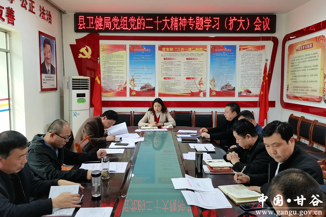 10月31日上午,甘谷县卫生健康局党组召开扩大会议,专题传达学习党的二十大精神,安排部署学习宣传贯彻落实工作。