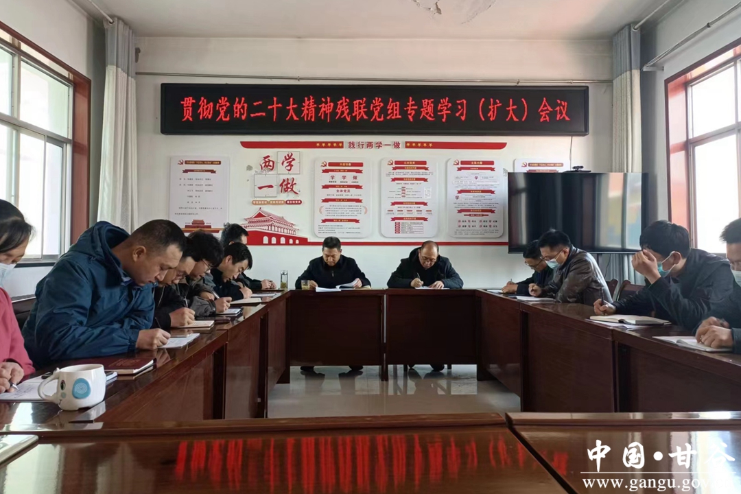 10月31日,甘谷县残联党组召开扩大会议,专题传达学习党的二十大精神,安排部署学习宣传贯彻落实工作。县残联全体干部及县委第三巡察组全体成员参加会议。