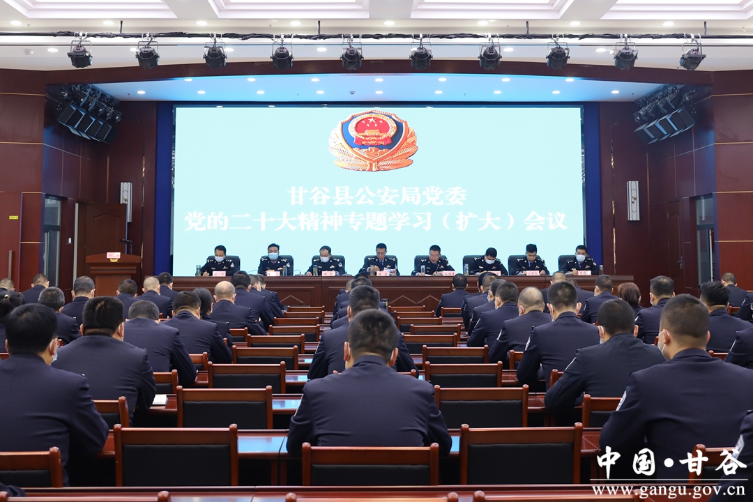 10月27日上午,甘谷县公安局党委召开学习中国共产党第二十次全国代表大会专题(扩大)会议,安排部署学习宣传贯彻落实工作。副县长、县公安局党委书记、局长张涛主持会议并讲话,局党委班子成员、局属各部门、各派出所班子成员参加会议。