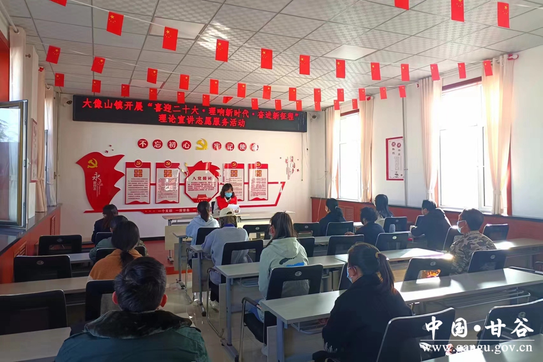 金秋时节迎盛会,信心满怀向未来。近日来,大像山镇新时代文明实践所理论宣讲志愿服务队深入各村(社区)新时代文明实践大讲堂、广场长廊、村镇巷道,以“集中课堂”、“板凳课堂”、“广场课堂”等形式开展了一场场别开生面的理论宣讲志愿服务活动,用“拉家常”的方式和乡亲们一起学报告、议发展、话未来。