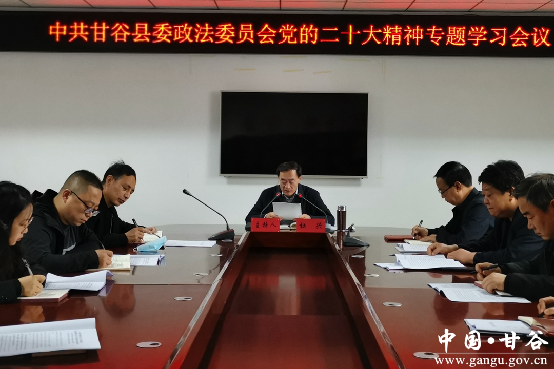 近日,甘谷县委政法委召开党的二十大精神专题学习会议,县委常委、政法委书记杜兴出席会议并讲话。