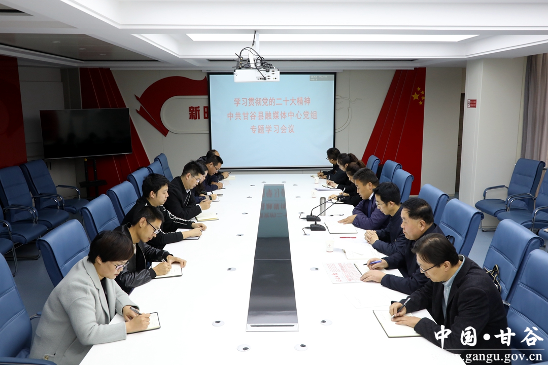 会议强调,深入学习宣传贯彻党的二十大精神是当前和今后一个时期的头等大事和最重要的政治任务,也是媒体人必须担负起的重大政治责任。要深刻领悟“两个确立”的决定性意义,增强“四个意识”、坚定“四个自信”、做到“两个维护”,切实把智慧和力量凝聚到落实党的二十大作出的重大部署上来,扎实做好党的二十大精神宣传报道和中心各项工作,忠诚履行党的意识形态重镇职责使命。要进一步发挥中心宣传报道的主力军作用,平实务实、精准精确、高质高效地宣传阐释好党的二十大精神,生动鲜活地讲好甘谷故事、讲好中国共产党的故事、讲好我们正在经历的新时代故事。要坚持读原文、悟原理、知原义,发挥领学作用,先学一步、学深一层,按照“五个牢牢把握”重要要求深学细悟党的二十大精神,做到知其言更知其义、知其然更知其所以然,当好深入学习贯彻党的二十大精神的带头人。要坚持自信自立,坚持守正创新,坚持问题导向,坚持系统观念,坚持胸怀天下,充分发扬斗争精神,着力推动中心转型发展,更加奋发有为地谋划推进重大主题宣传报道、精品节目创作、新媒体新平台建设、队伍建设、全面从严治党以及疫情防控等各项工作,踔厉奋发、勇毅前行,以中心各项事业的发展成果检验学习成效,进一步巩固拓展中心发展的良好势头。