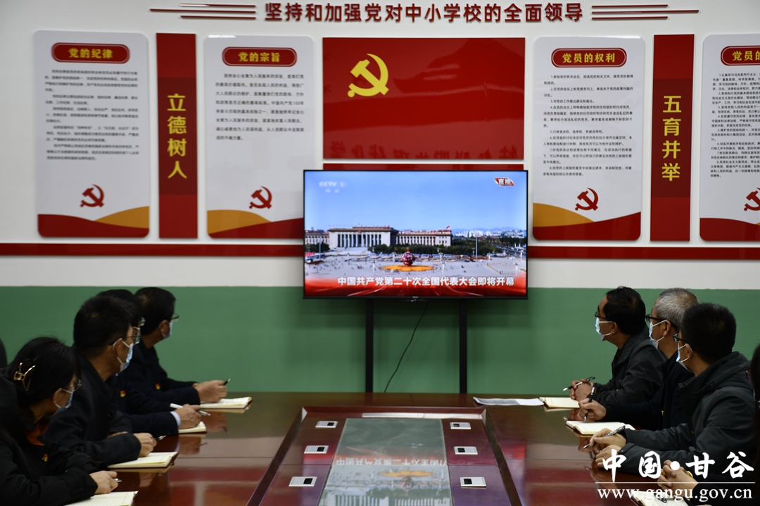 10月16日,甘谷县教育系统党员教师怀着十分激动和喜悦之情,在第一时间通过电视、网络、广播等形式集中收听收看了党的二十大开幕盛况,聆听了习近平总书记所作的工作报告,广大党员教师精神振奋、倍受鼓舞,反响强烈。一致表示,要把学习宣传贯彻党的二十大精神作为当前和今后一个时期的重点工作抓紧抓好,进一步增强责任感和使命感,立足岗位、踔厉奋发、勇毅前行,以实际行动为甘谷教育新发展贡献自己的力量。
