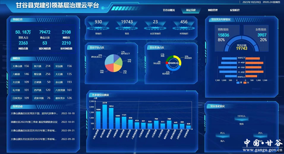 近年来,甘谷县委深入学习贯彻习近平总书记关于基层党建和基层治理重要论述,按照中央和省、市委的部署要求,突出以人民为中心的发展理念,充分发挥基层党组织的领导和轴心作用,按照“一元领导、一体运行、一网覆盖”的要求,坚持以智慧党建为统领,以深化改革为动力,积极完善多元参与、齐抓共管的运行机制,开发建设“甘谷县党建引领基层治理云平台”,实现了“让数据多跑路、群众少跑腿”,全面提升了社会治理体系和社会治理能力现代化水平。