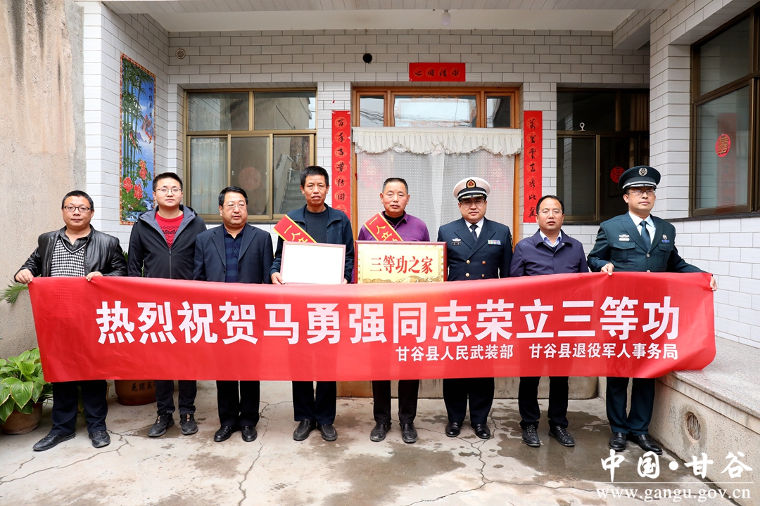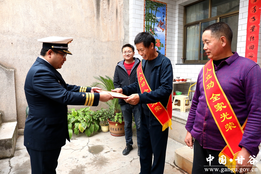 10月13日,甘谷县开展为立功受奖的现役军人家庭送喜报、走访慰问军属等拥军优属活动,县委常委、政法委书记杜兴,县人武部政委杨磊,县退役军人事务局、安远镇主要负责人参加活动。