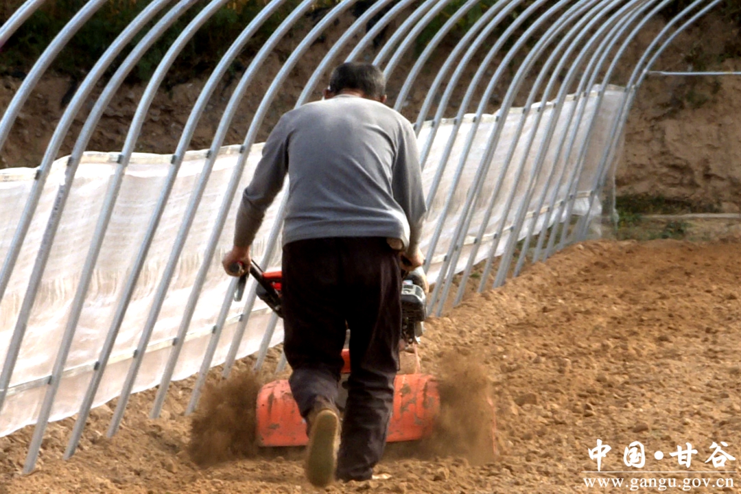 甘谷县丰昌种植农民专业合作社负责人王亚东说,大棚的钢架最近两天刚搭好,我想在上膜之前,抓时间把大蒜种上,种上以后上膜也就方便了。