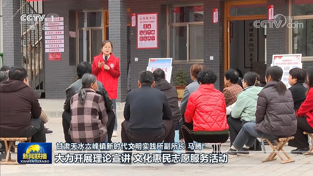 10月11日晚,央视《新闻联播》以【喜迎二十大】《奋进新征程 团结奋斗迎盛会》为题,用30秒的时间,介绍了自开展新时代文明实践中心建设以来,甘谷县六峰镇积极探索创新,不断提升农村文化建设的质量和水平,更好满足农民群众精神文化新期待的做法与成效。