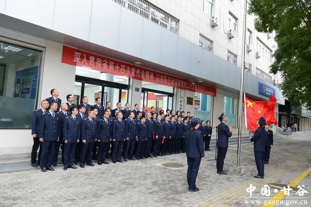 金秋十月,红旗招展。10月8日上午,甘谷县税务系统在国庆节后上班第一天,举行升国旗仪式,激励全县税务干部收心归位向前行,抖擞精神再奋进,以饱满的热情吹响决战决胜全年目标任务的“冲锋号”。