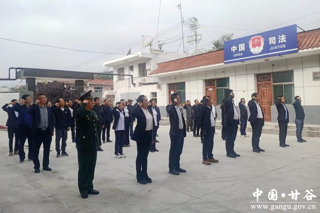 仪式上,护旗手迈着坚实的步伐,健步向升旗台走去,伴随着雄壮的国歌声,鲜艳的五星红旗冉冉升起,现场全体同志庄重地向国旗行注目礼,共唱国歌,祝福伟大的祖国繁荣昌盛。