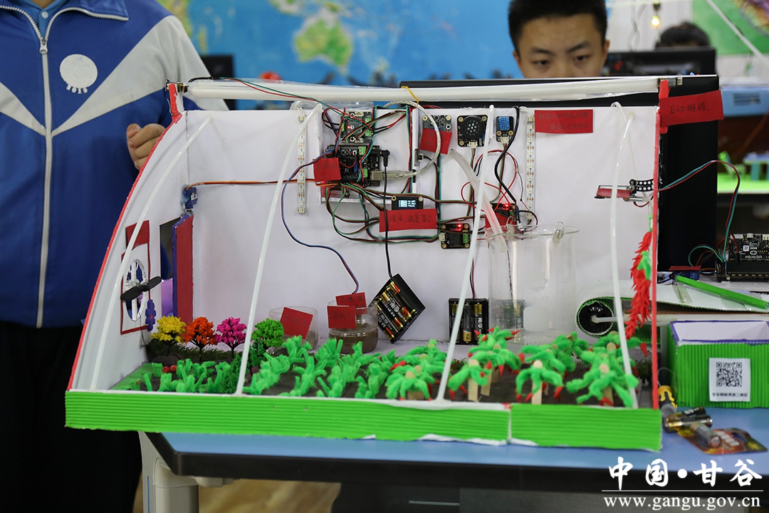 “我们这个作品它具有大棚膜自动升降、温度控制、湿度控制以及光线控制等多种功能。我们希望通过这个作品,来减轻农民伯伯的劳动,让他们种出更优质的甘谷辣椒。”甘谷县模范初级中学八年级(3)班学生张文杰说。