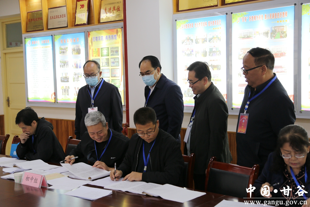 赛后,为保证比赛的公平公正,立即将所有参赛作品,进行编号并装订。同时按照县教育局统一安排,县教研室从甘谷县高中、初中学科中心教研组和相关小学抽调了9位优秀语文教师,从作文要求、评价标准和工作纪律等方面进行了培训,紧锣密鼓组织开展作文评卷工作。评卷采取密封、分年级并流水阅卷的形式,经评委组老师从书写、内容、思想、文笔等各个方面综合考虑,认真细致地评审,每篇作文由三位评委教师评出分数,取作品平均分作为选手比赛成绩。