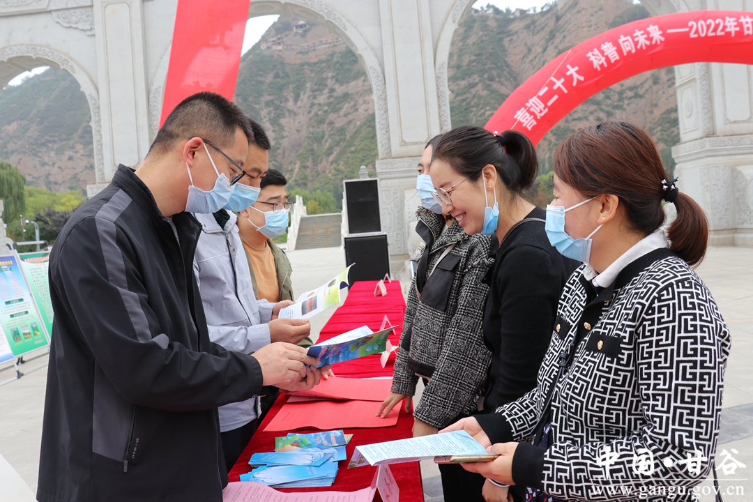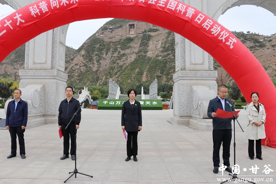 9月23日,甘谷县在大像山水上公园举办主题为“喜迎二十大,科普向外来”的全国科普日宣传活动启动仪式。县人大常委会副主任杨晓涛主持仪式,副县长金辉致辞并宣布活动启动,县政协副主席魏杰宣读《甘谷县2022年“全国科普日”活动方案》。各乡镇、县直相关单位负责人、干部职工以及群众代表共计220余人参加活动。