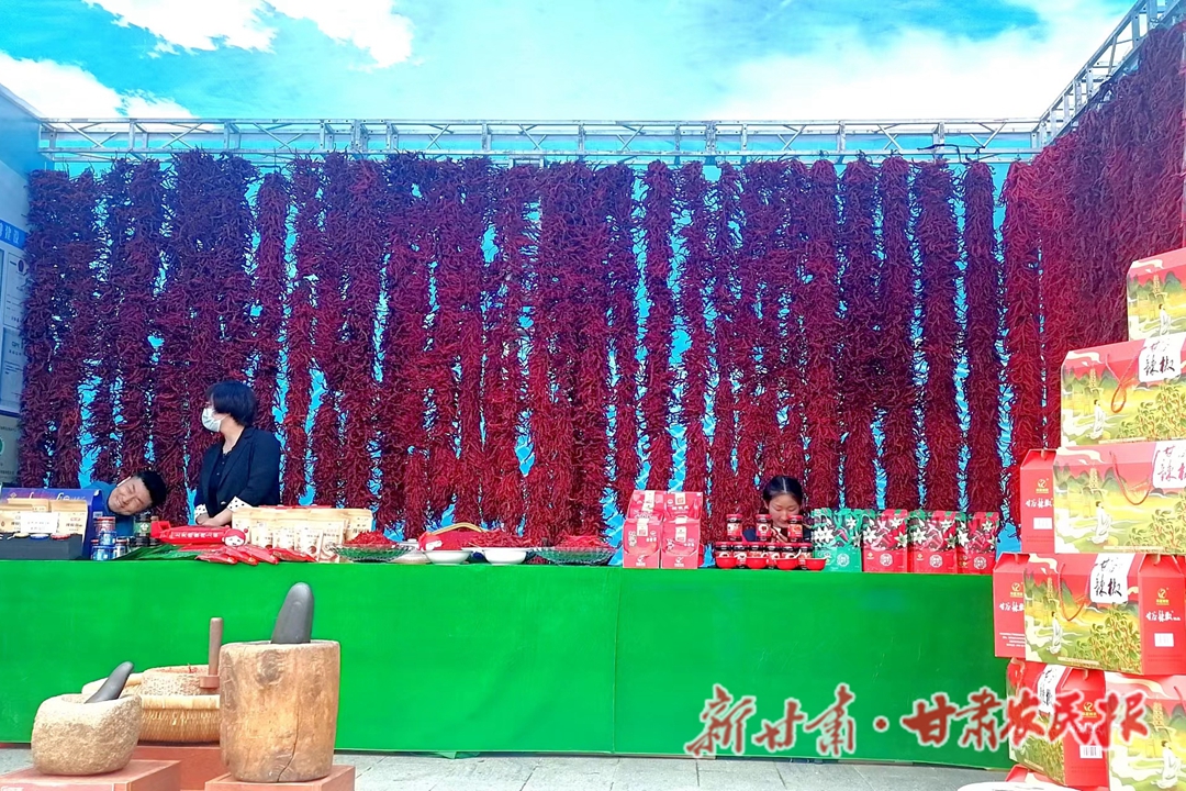 农民丰收节少不了直播带货一环。“我们甘谷不仅有香甜可口的苹果,还有辣味十足的辣椒、做工精细的麻鞋、上品的中药材等农特优农产品,欢迎各位下单。”在润谷直播区,直播人员不停地推介着,吸引了众多的与会人员围观,负责人李燕说,他们已参与农民丰收节直播已有两年时间,今天已下单3000余份,通过宣传推介,网友对甘谷农产品好评不断。