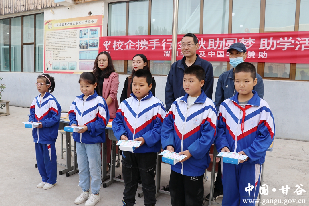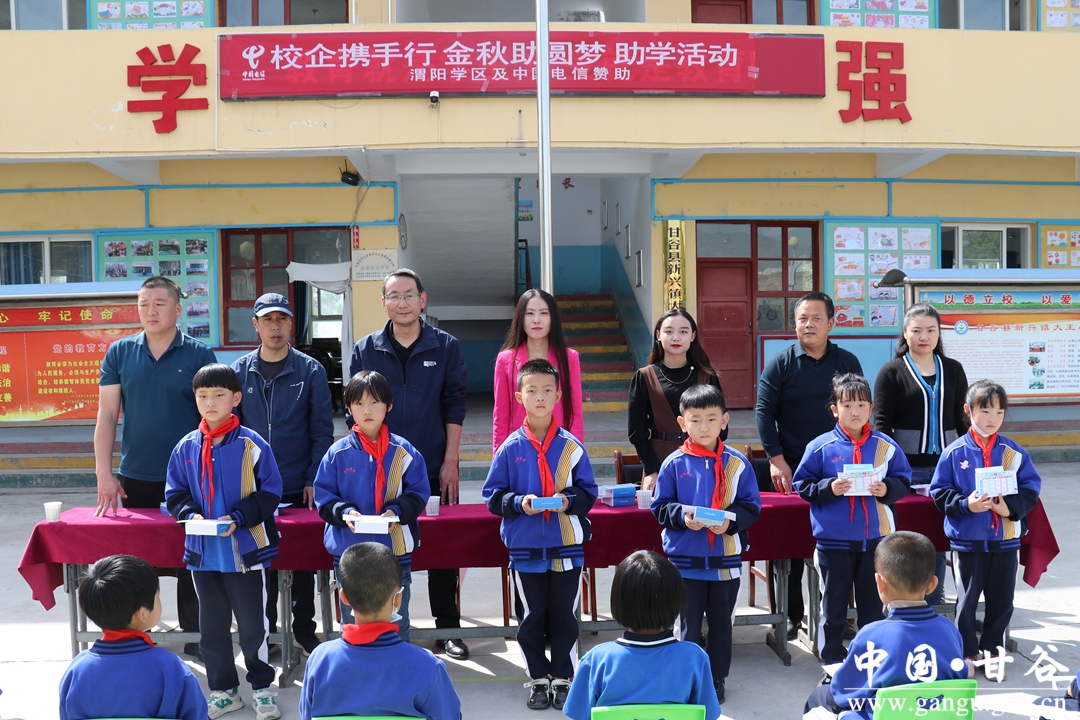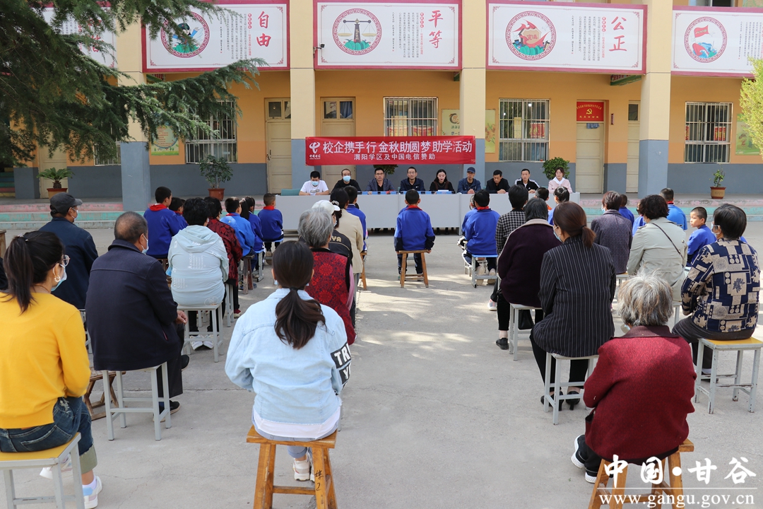 近日,渭阳学区和中国电信甘谷分公司联合开展“校企携手行 金秋助圆梦”爱心助学活动。
