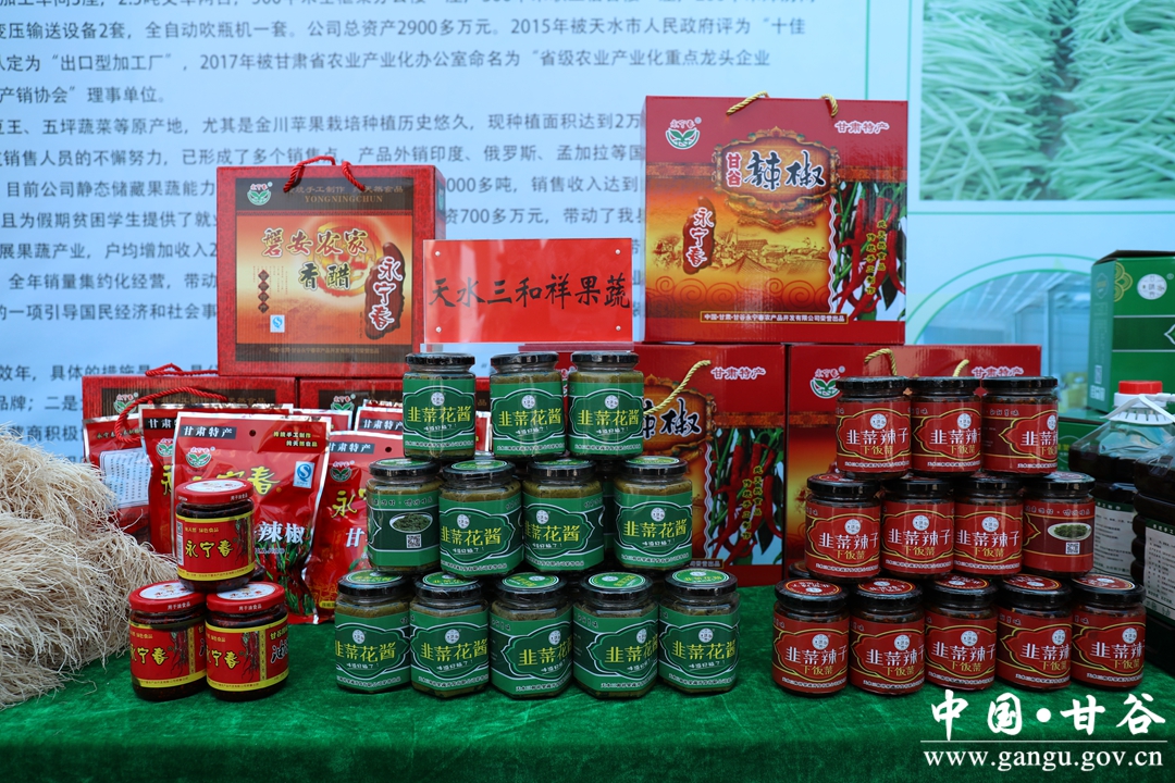 甘谷县华夏邦农农业科技有限公司负责人王国义说,本次我们在展会上带来的产品主要有辣椒调味品20余种产品,我们种植辣椒的面积有5000余亩,年产值有2000万,我们甘谷辣椒有种植400多年的历史,以皮薄肉厚为特点,现在赢得了市场的普遍认可。