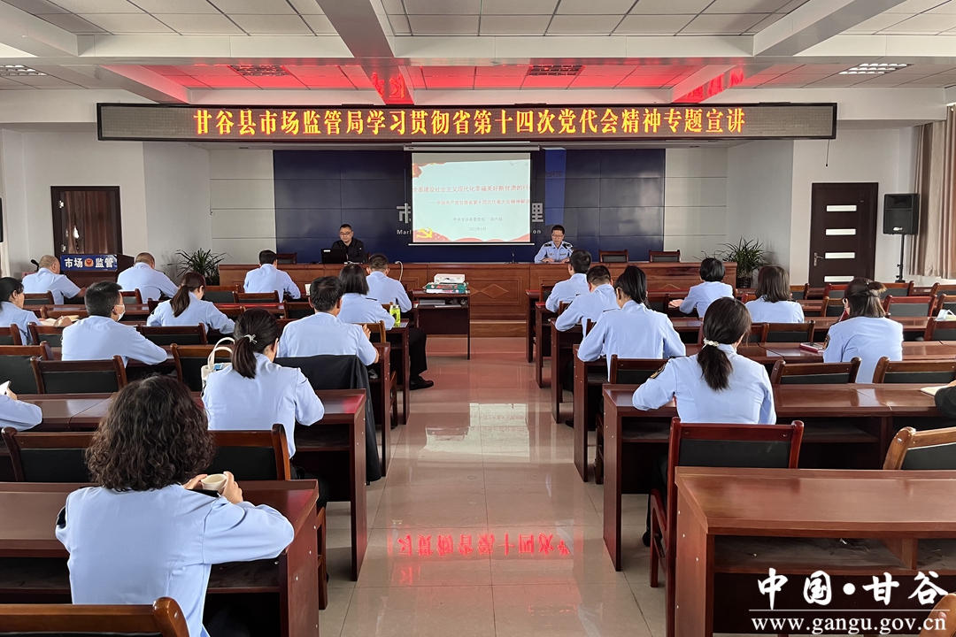 9月20日,甘谷县市场监督管理局邀请县委党校讲师寇兴祜为干部职工作省第十四次党代会精神专题宣讲。县市场监管局机关、综合执法队、检验检测中心以及部分监管所人员共50余人聆听了专题宣讲。