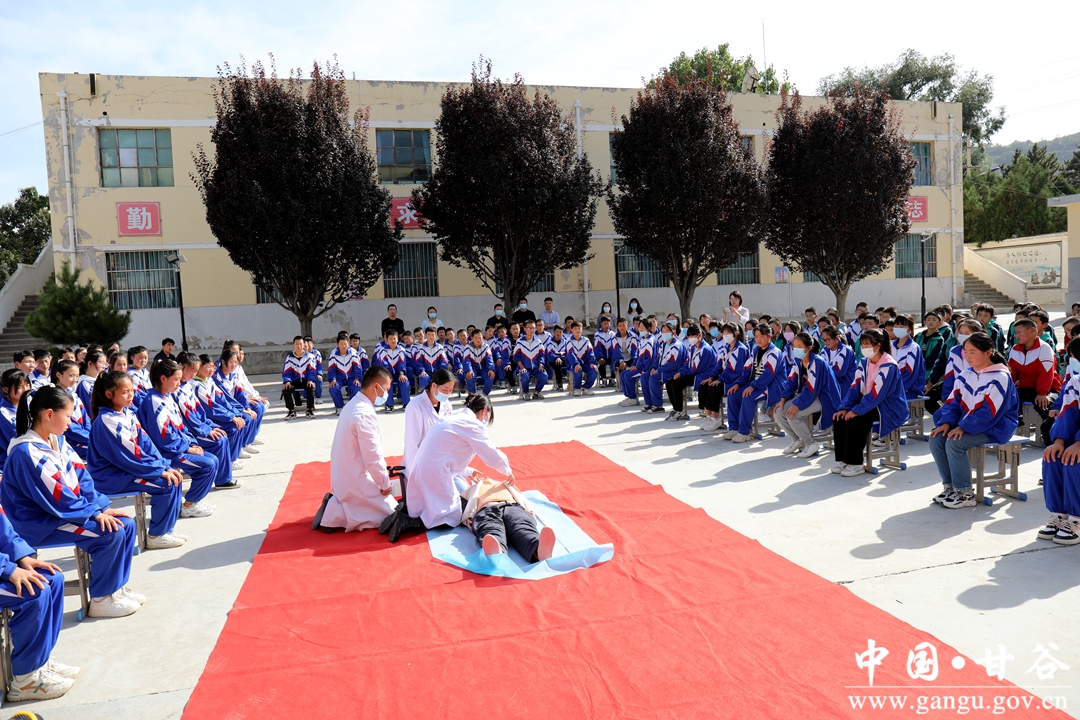 为大力弘扬“人道、博爱、奉献”的红十字精神,深入普及红十字应急救护知识宣教工作,切实帮助在校学生掌握基本现场急救知识和操作技能,不断提高处理意外伤害能力,9月22日,甘谷县红十字会向六峰学区捐赠价值60000元的防疫物资,助力六峰学区疫情防控工作,同时联合民盟甘谷总支和十里铺卫生院在六峰镇金坪初级中学开展应急救护知识技能培训活动。
